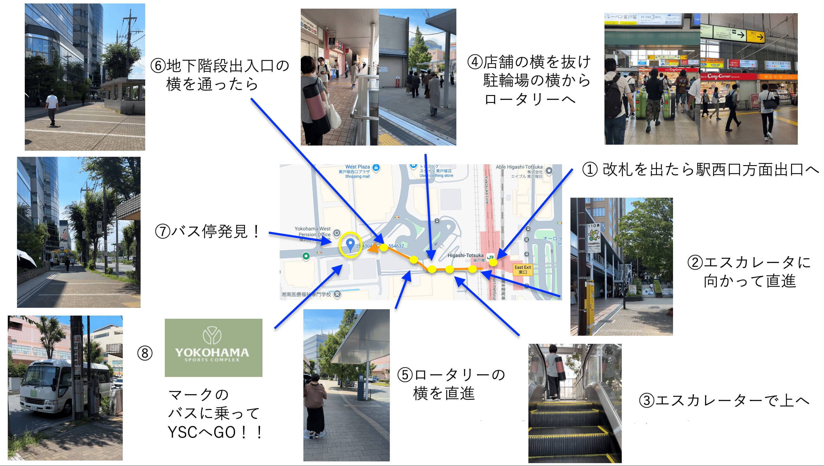 東戸塚駅からYSCへのバス停までの道順を記載しています